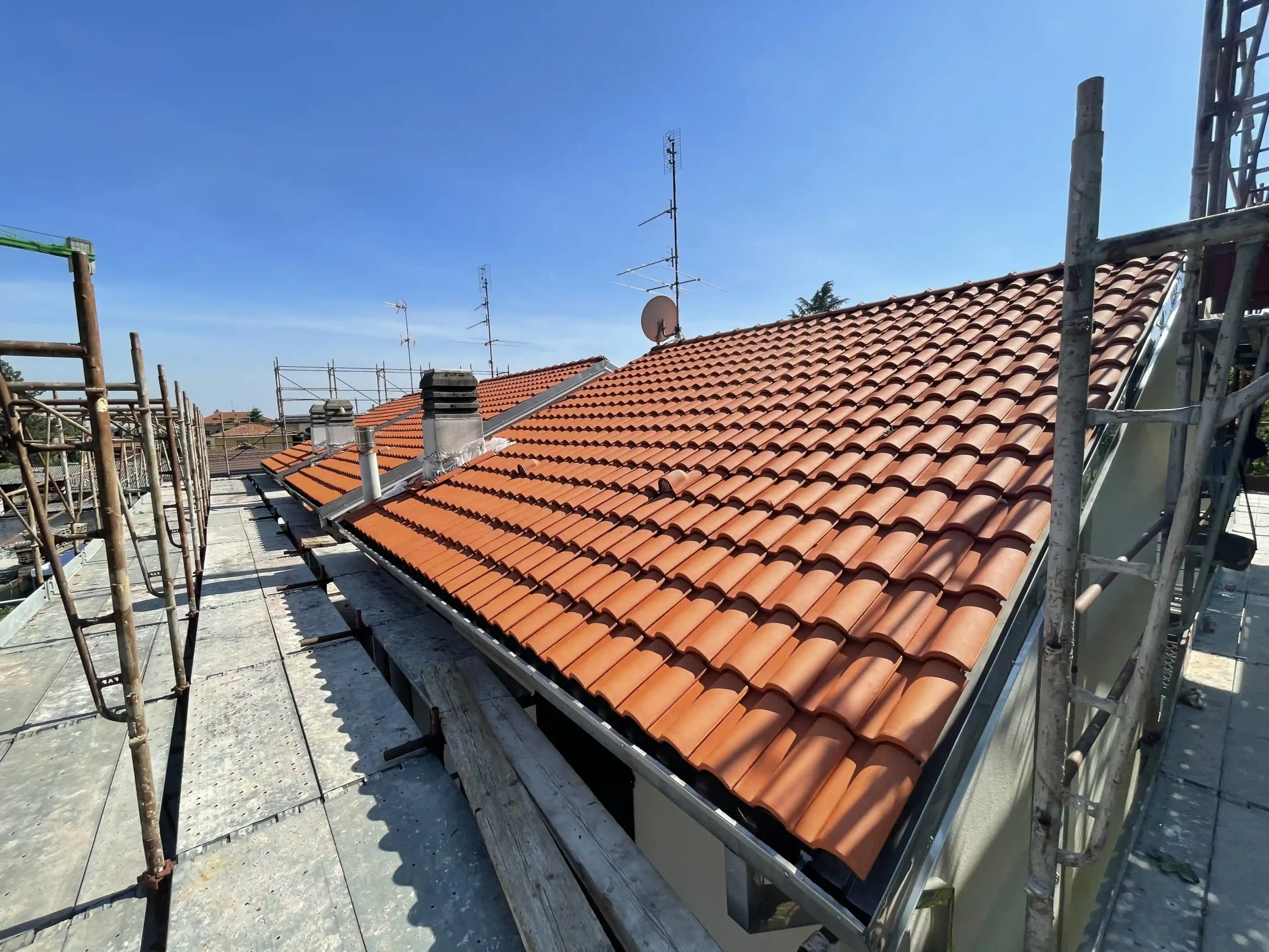 La nostra impresa si è specializzata negli anni nel rifacimento e nella manutenzione di coperture, sia civili che industriali. Oltre alla sostituzione del manto di copertura in tegole o pannelli, ci occupiamo anche dell’impermeabilizzazione sottostante, della lattoneria, dell’isolamento termico in pannelli o schiuma e della realizzazione di linee vita per adeguarsi alle più recenti normative sulla sicurezza.