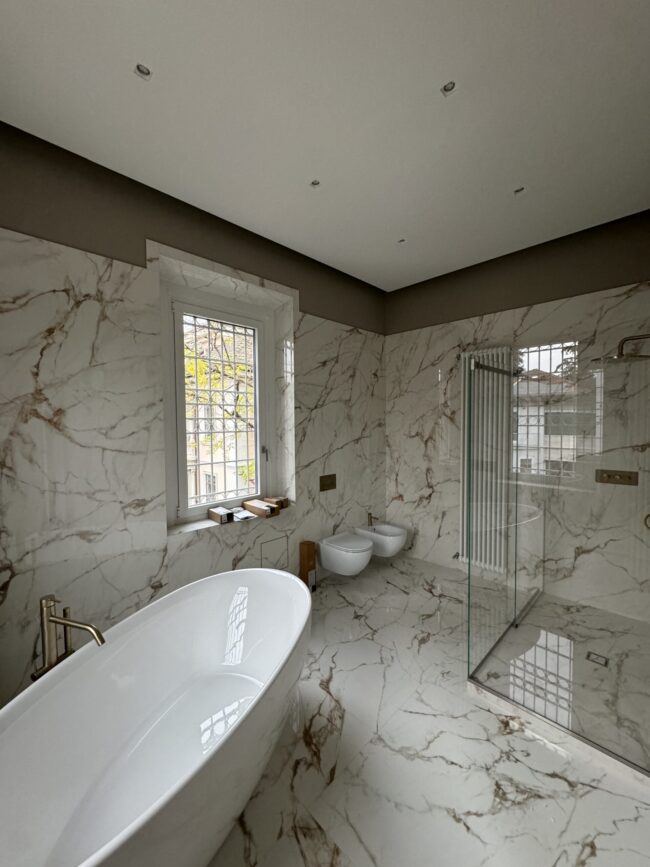Rifacimento Copertura e Facciata – Villa MarcalloLavori Eseguiti: Rimozione copertura Pulizia sottotetto con rimozione strato coibente in lana di roccia Realizzazione nuovo manto di copertura Realizzazione nuovo isolamento termoacustico in schiuma poliuretanica Posa cappotto su facciate Realizzazione intonaci e verniciatura facciate